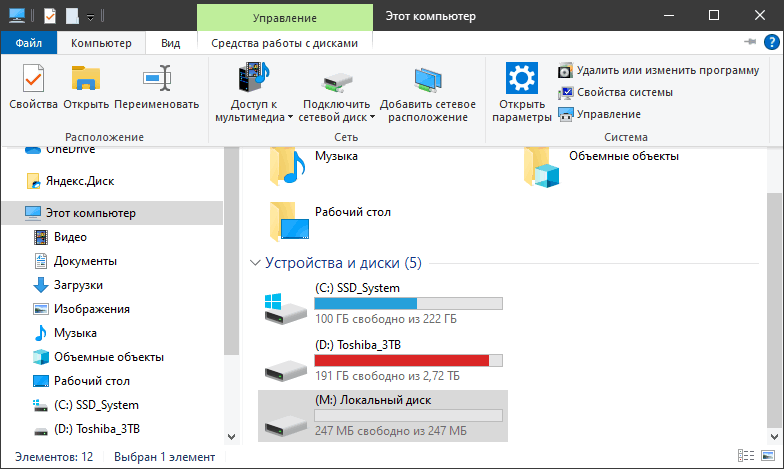букве диска (в нашем случае это буква M).