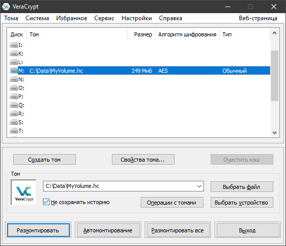 На следующих этапах мы вернёмся в главное окно VeraCrypt.