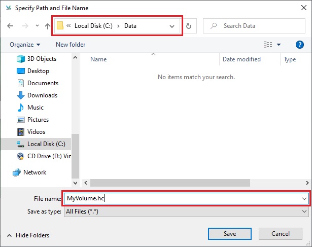 In this tutorial, we will create our VeraCrypt volume in the folder F:\Data\