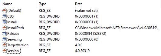 The installer requires .Net Framework 4 (Not a newer one like .Net Framework 4.8!). Since a newer version is already preinstalled with Windows 10, the installer has to be tricked: